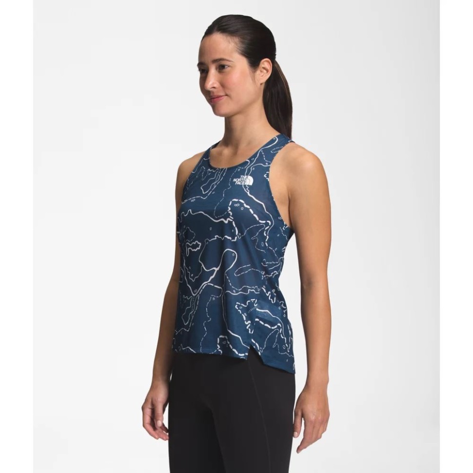 يعتبر خزان Sunriser المطبوع للسيدات طبقة فائقة الراحة لأيام على الطريق. تفاصيل التصميم المصقولة مثل الحاشية المنقسمة والذيل المجوف والظهر المتسابق تضمن الراحة والتغطية طوال اليوم. الطباعة الفريدة على هذا النمط مستوحاة من الدورات التدريبية من سباقات المسارات المفضلة لفريقنا الرياضي.