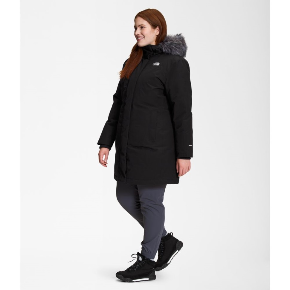 متوفر بأحجام ممتدة ، تتميز السترة النسائية بطول الفخذ بالإضافة إلى القطب الشمالي بعزل 550 ملئًا و 150 جرامًا من العزل البيئي للحصول على ملاءمة جذابة ونسبة كبيرة من الدفء إلى الوزن.