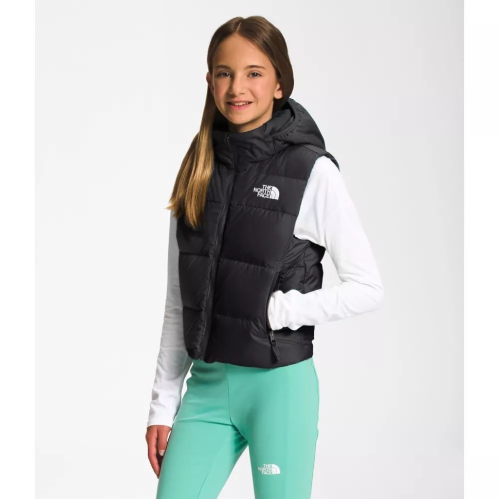 سترة بغطاء للرأس للبنات قابلة للعكس شمالًا للوجه الشمالي باللون الأسود